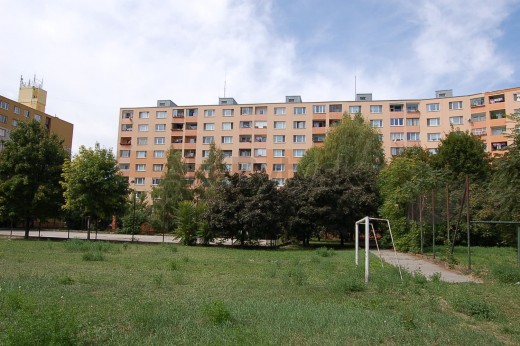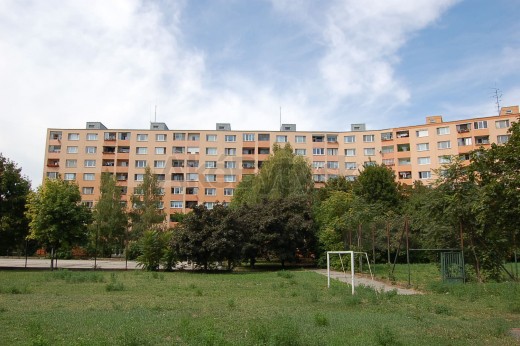 Miestna šasť Dvory III. Vo vchode č. 23 sú 2 byty na podlaží a 16 bytov vo vchode.